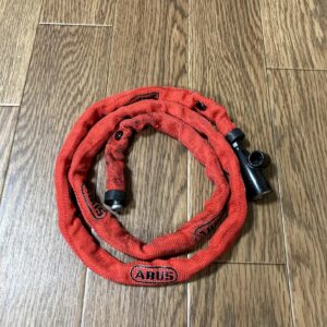 盗難が多いロードバイクには強いチェーンロックは必ず持っておきたいですね。購入したのはABUSのチェーンロック。