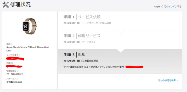 修理の状況は専用ページでチェックすることが出来ます。今どんな状態なのかが分かるのです。この状態は最後の最後、出荷されてからのものなのですが、本当にわかりやすい。